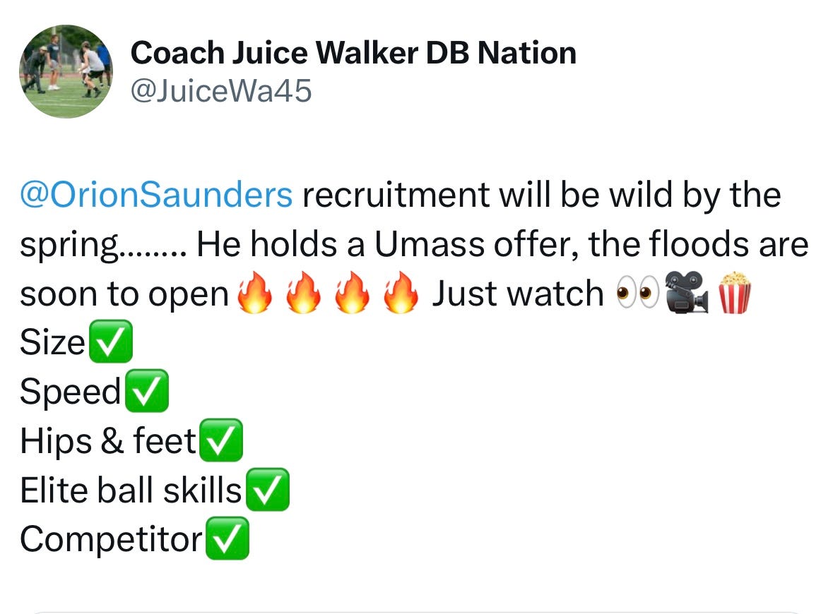 Dexter Southfield will be well-represented on UMass’ Recruiting Board as well. 2026 WR/DB/ATH Charlie Hanafin was offered on Saturday. He’s got some big-time offers already, but a source close to Hanafin noted the almost tangible new energy in the building in Amherst right now and said the UMass offer is one Hanafin will absolutely take seriously.