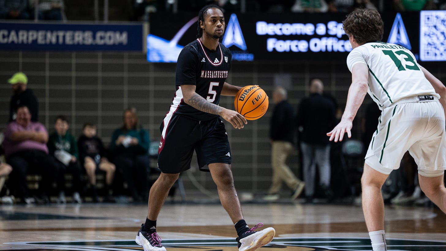 Danny Carbuccia played a central role in the comeback effort, scoring 13 points and dishing out eight assists while keeping UMass organized offensively during its best stretches.