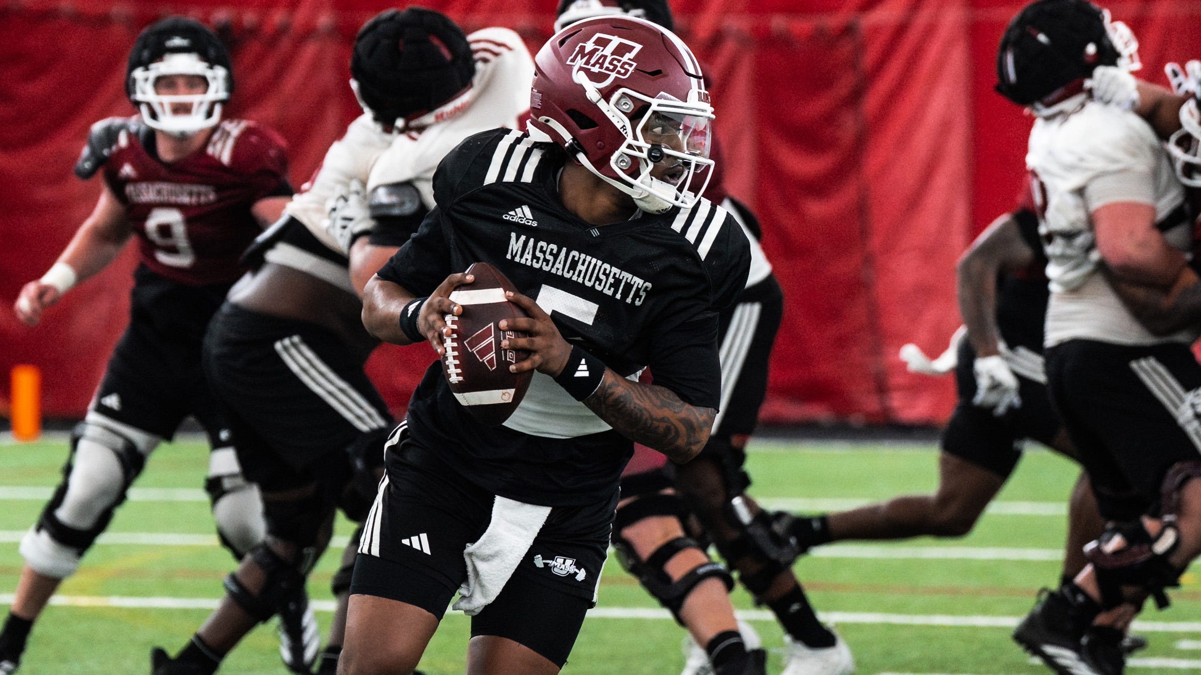 That mindset has shaped Watson’s early approach inside the program as the former Virginia Tech quarterback works to establish himself within the Minutemen’s offense and the locker room since arriving in January.