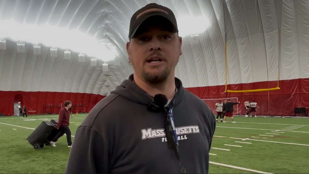 UMass TE coach Matt Layman is impressed with his group’s progress.