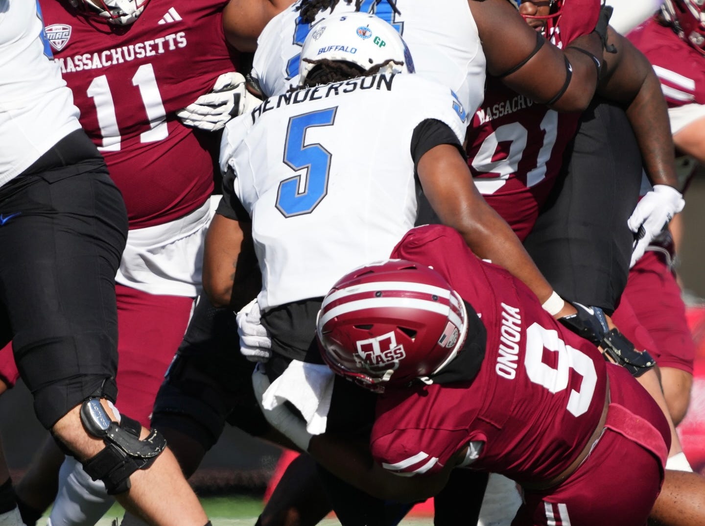It wasn’t until a defensive holding penalty on Buffalo gave UMass a first down at the Bulls’ 35-yard line with 4:50 to play that the Minutemen truly slowed down. By then, unfortunately, UMass had wasted opportunities to waste the time.
